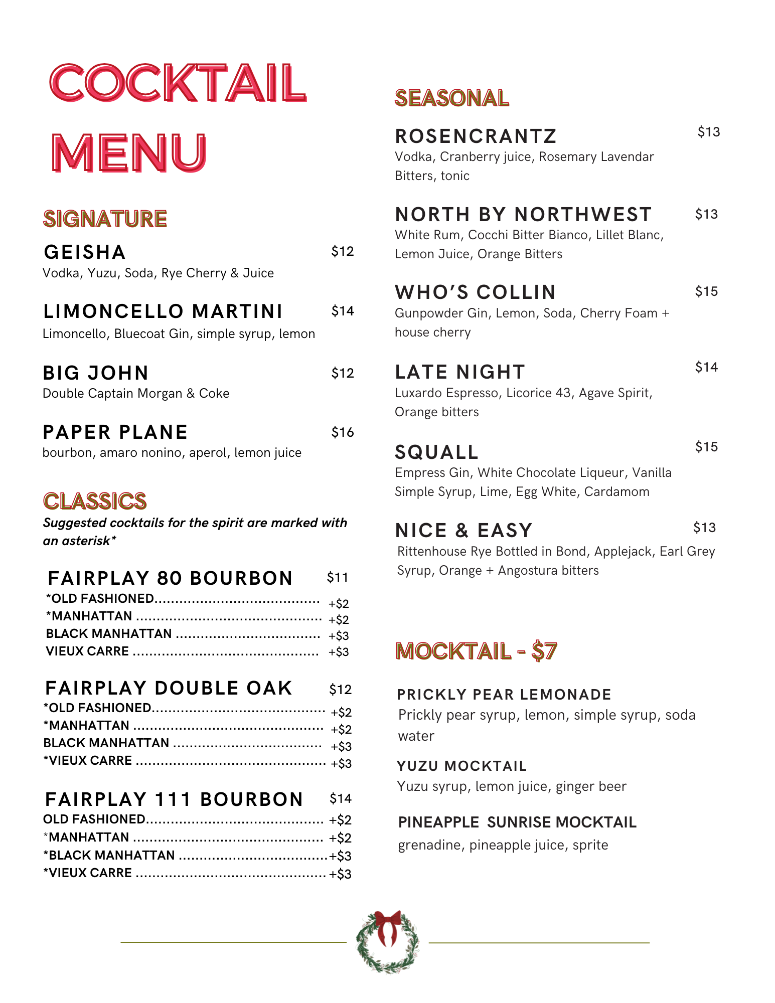 Signature and Seasonal craft cocktails make every visit a memorable one at John Ryan.